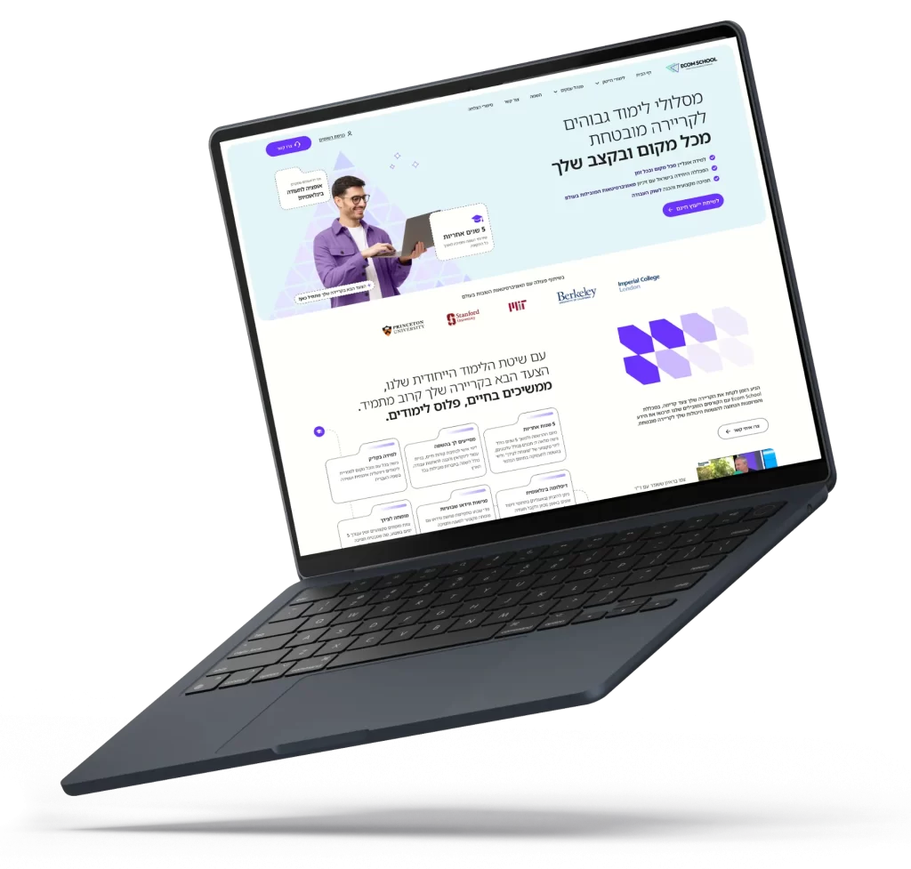 המכללה מתמחה בפיתוח טכנולוגיות חדשניות ומותאמות אישית לכל סטודנט והסגל האקדמי כולל מנחים מהמובילים בתעשייה שמלווים אתכם אישית לכל אורך הדרך. בנוסף, ECOM היא המכללה היחידה בתחומה שמפעילה עבורכם רשת חברתית ייחודית שעוזרת, תומכת, ומלווה אתכם עד להשמה ולאורך הקריירה.